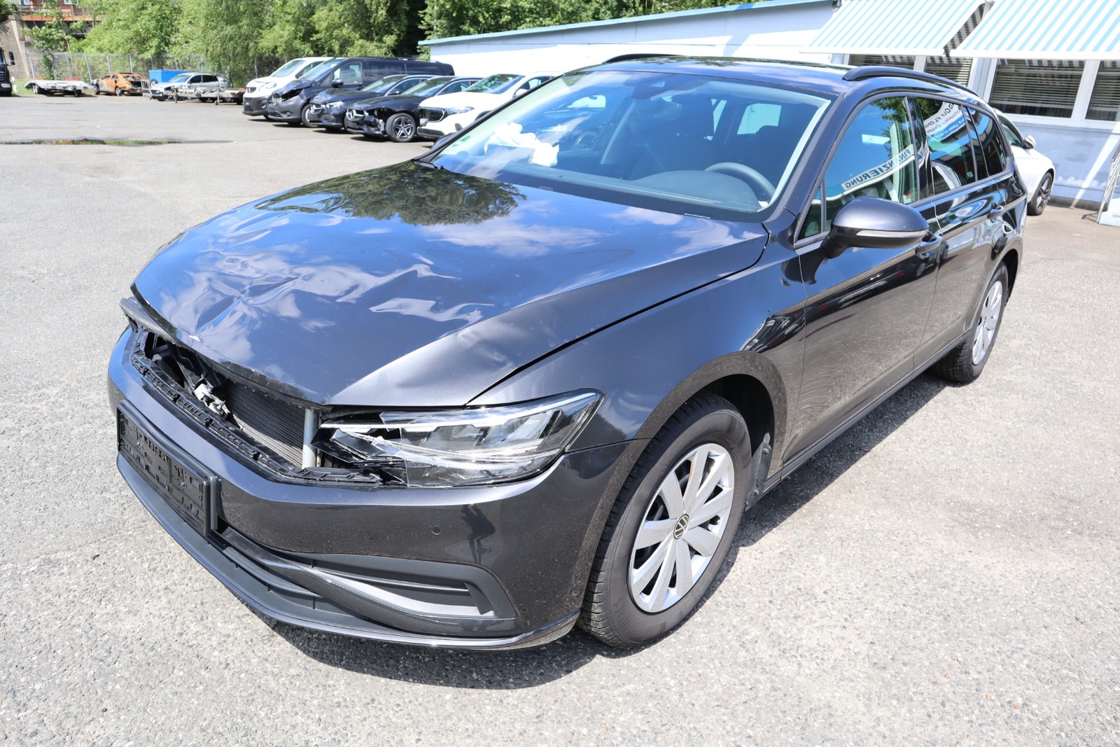 - Frontschaden. Airbags sind offen. Kann aber auf dem Hof gefahren werden.